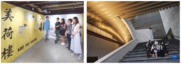 青年参观美荷楼(左)(图片来源:香港旅游发展局)、香港故宫文博馆青年交流(右)。