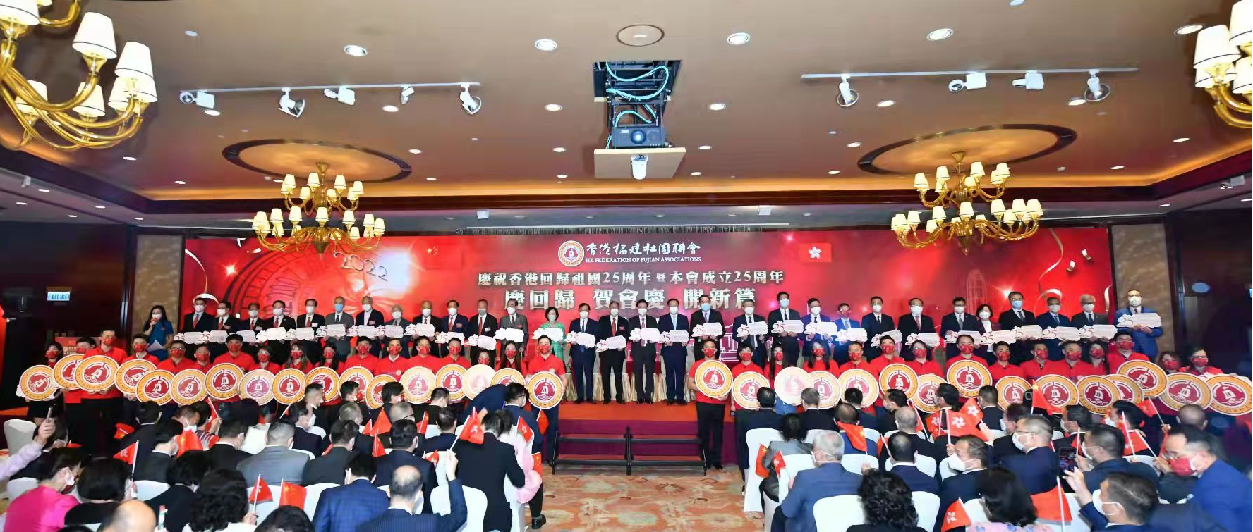 本网讯 7月8日,香港福建社团联会举办庆祝香港回归祖国25周年暨联会成立25周年庆祝大会。香港中联办副主任何靖应邀出席并主礼庆祝大会。香港特区行政长官李家超出席并致辞。立法会主席梁君彦、行政会议召集人叶刘淑仪、外交部驻港特派员公署副特派员方建明及特区政府有关官员共同出席并主礼大会。