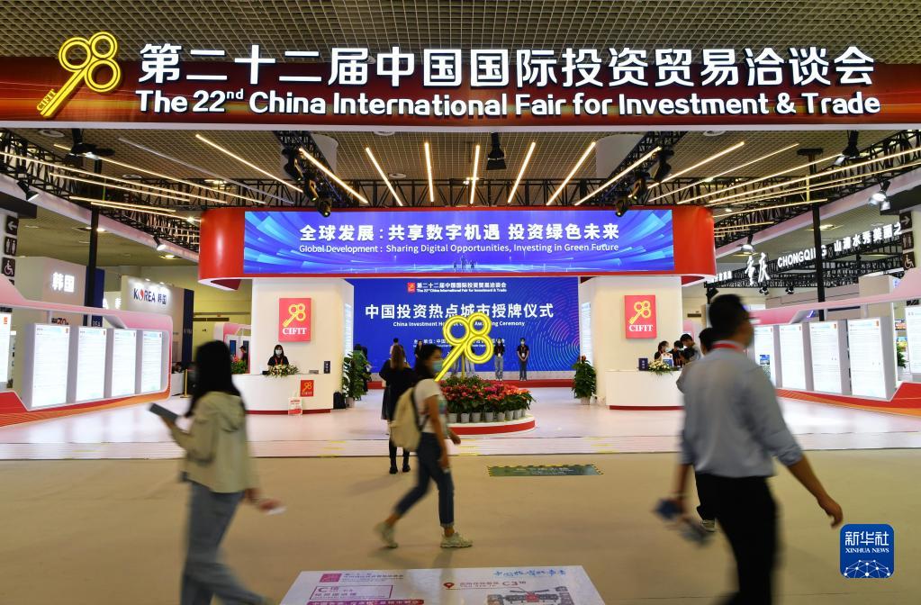 2022年9月8日拍摄的第二十二届投洽会展馆现场。当日,以“全球发展:共享数字机遇、投资绿色未来”为主题的第二十二届中国国际投资贸易洽谈会(简称“投洽会”)在福建厦门开幕。(新华社记者 魏培全 摄)