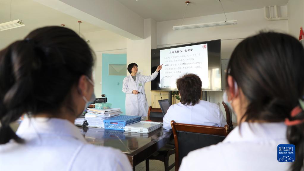 天津市中心妇产科医院妇产专业副主任医师饶阳给甘南州人民医院妇产科的医生进行培训(2021年1月15日摄)。(新华社记者 张睿 摄)