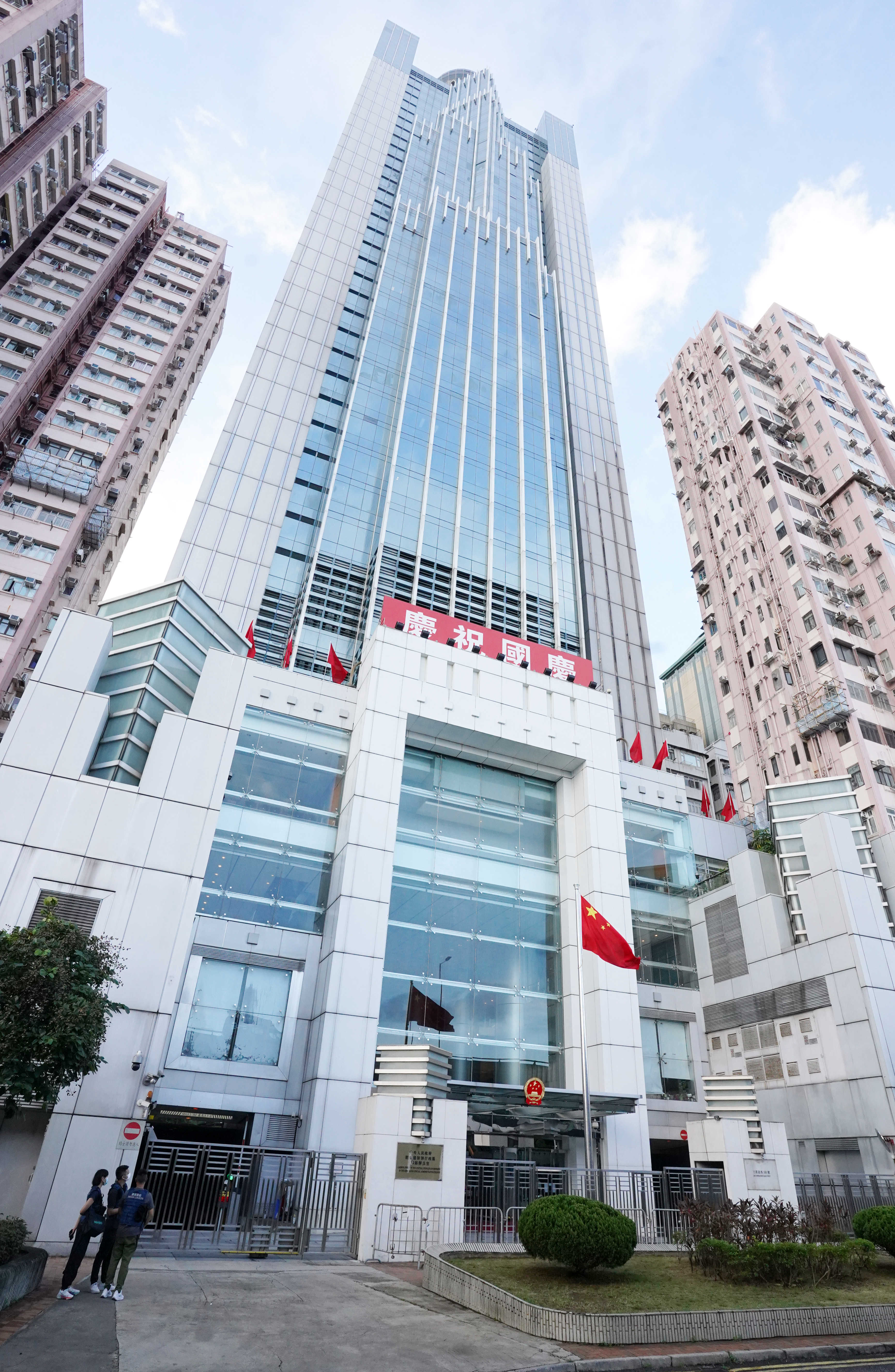 中央驻港国安公署、外交部驻港特派员公署、解放军驻港部队等中央驻港机构同时举行国庆升旗仪式。