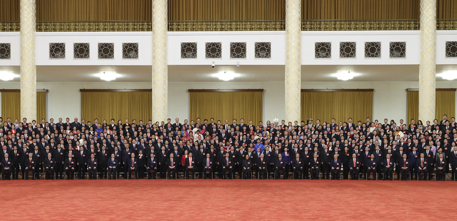 10月23日下午,中共中央总书记、国家主席、中央军委主席习近平等领导同志在北京人民大会堂亲切会见出席党的二十大代表、特邀代表和列席人员,并同大家合影留念。新华社记者 丁林 摄