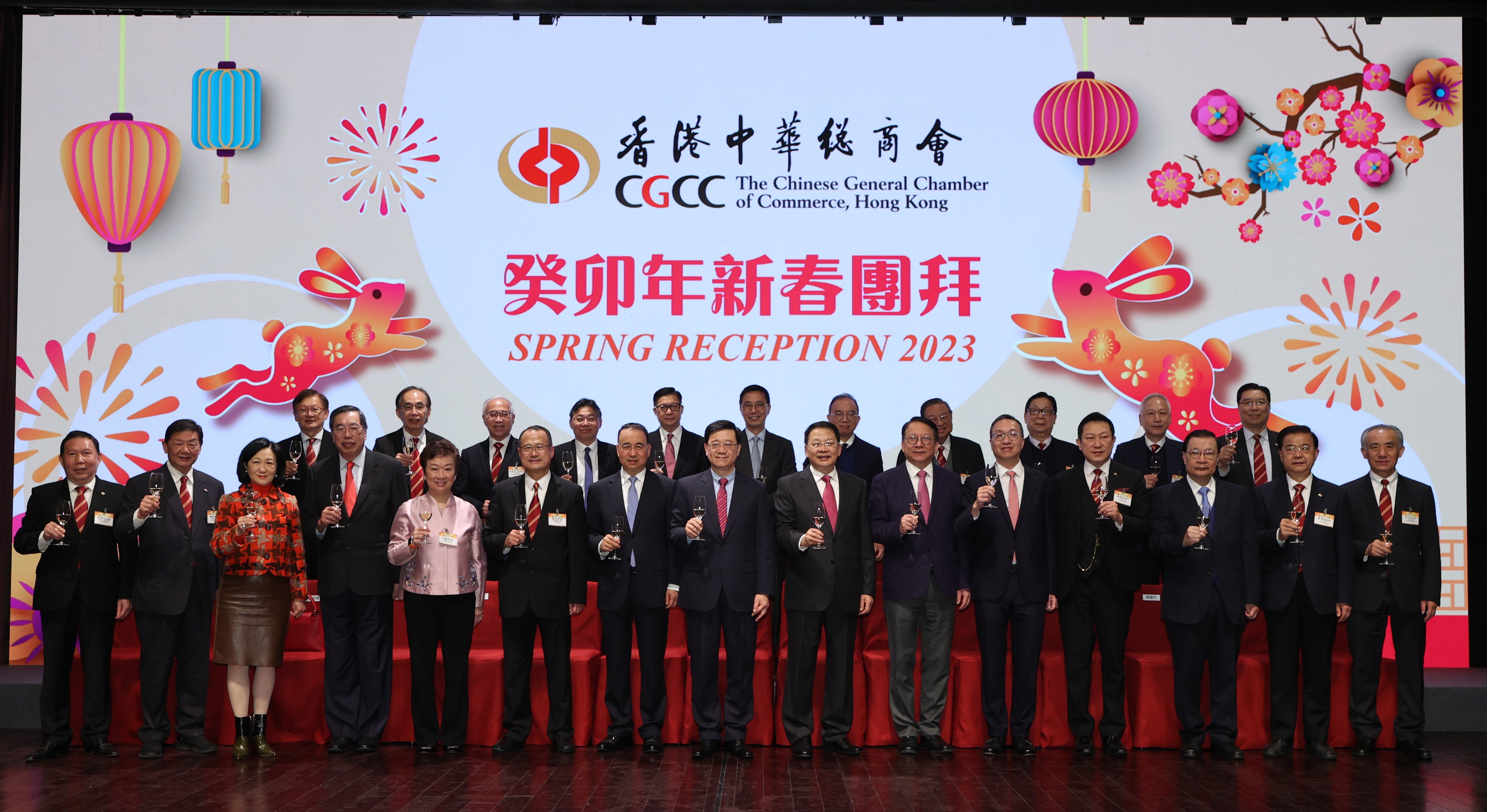 本网讯 2月1日,香港中华总商会癸卯年新春团拜在香港君悦酒店举行,我办副主任尹宗华应邀出席,并与香港特区行政长官李家超、外交部驻港公署特派员刘光源等一起主礼活动,社会各界嘉宾近500人出席活动。