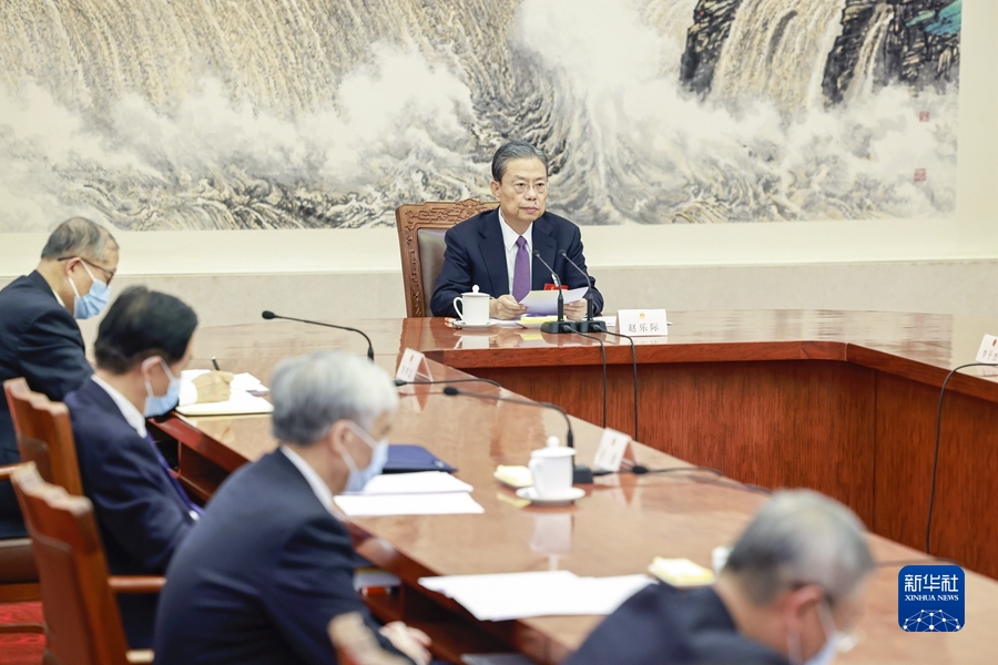 3月11日下午,十四届全国人大一次会议主席团常务主席第六次会议在北京人民大会堂举行。大会主席团常务主席赵乐际主持会议。新华社记者 丁林 摄
