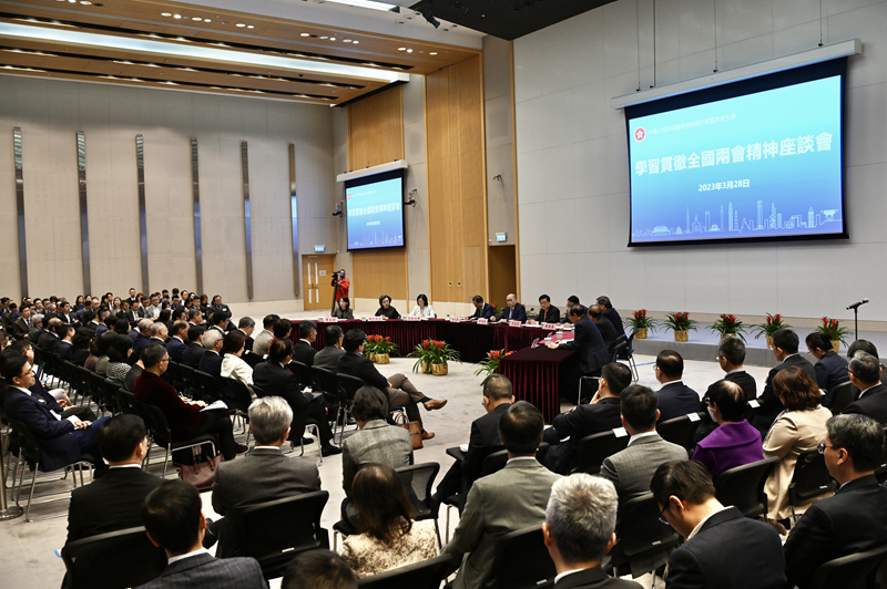 座谈会上,与会代表分享了学习贯彻全国两会精神的体会和建议。特区政府政务司司长陈国基、立法会主席梁君彦、行政会议召集人叶刘淑仪、港区全国人大代表马逢国在座谈会上作了交流发言。大家纷纷表示,全国两会的精神体现了中央对香港始终如一的关怀和重视,进一步增强了香港市民乃至国际社会对香港未来发展的信心。在中国式现代化进程中,香港的作用更加凸显,特区管治团队的责任也更加重大。惟有坚持“人民至上”,问政于民、问需于民、问计于民,才能推动香港在由治及兴新阶段写下良政善治新篇章。