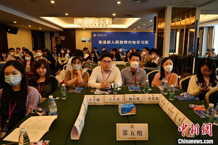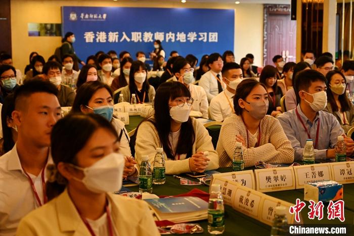 4月11日,为助力香港新入职教师的专业发展,体验国家发展的最新成果,推动香港与内地基础教育融合发展,由香港特别行政区政府教育局主办的香港新入职教师内地学习团在广东广州华南师范大学举行开班典礼。 (中新社记者 陈楚红 摄)