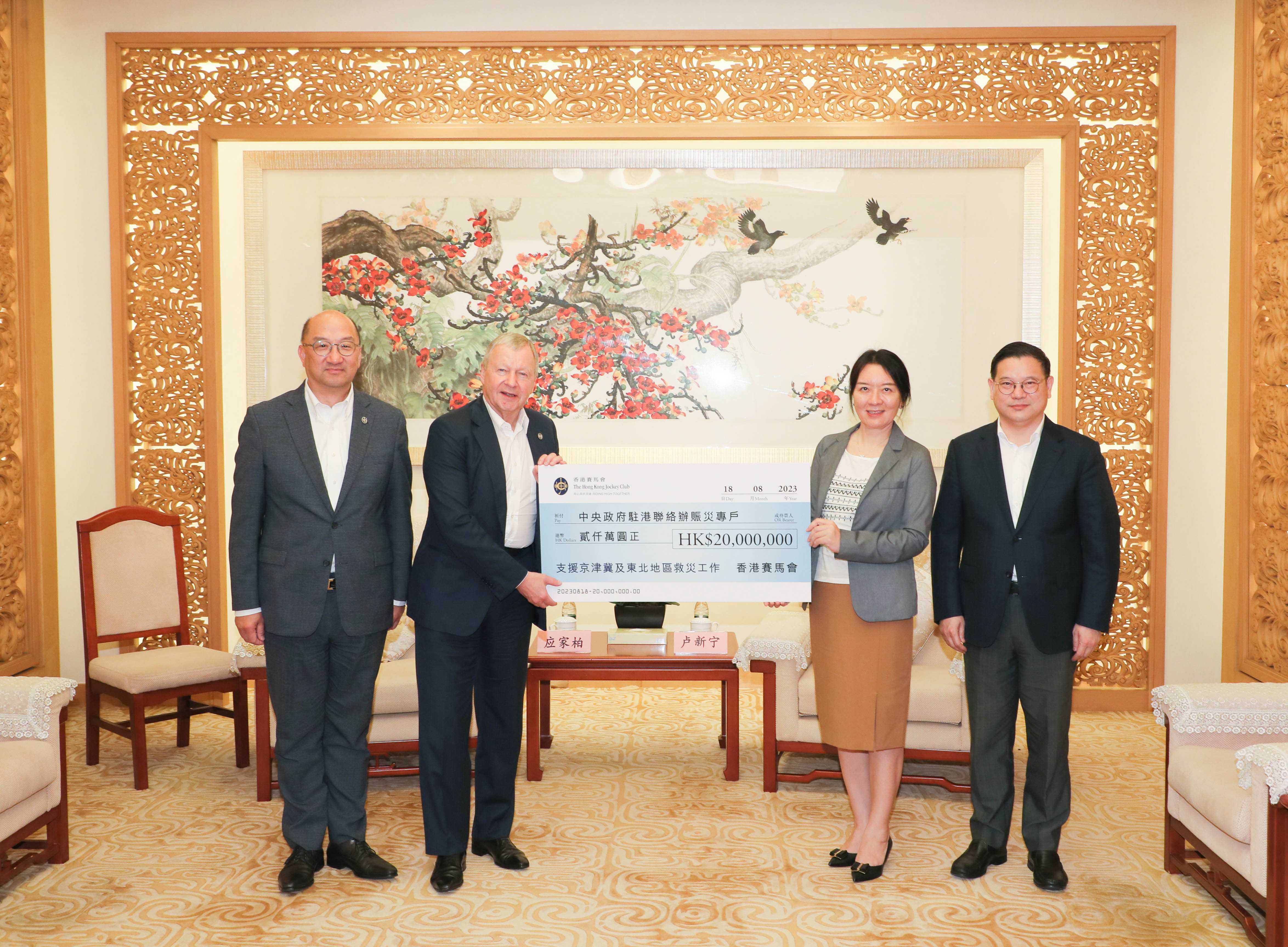 香港赛马会捐款2000万港元。(图片来源:中央政府驻港联络办)
