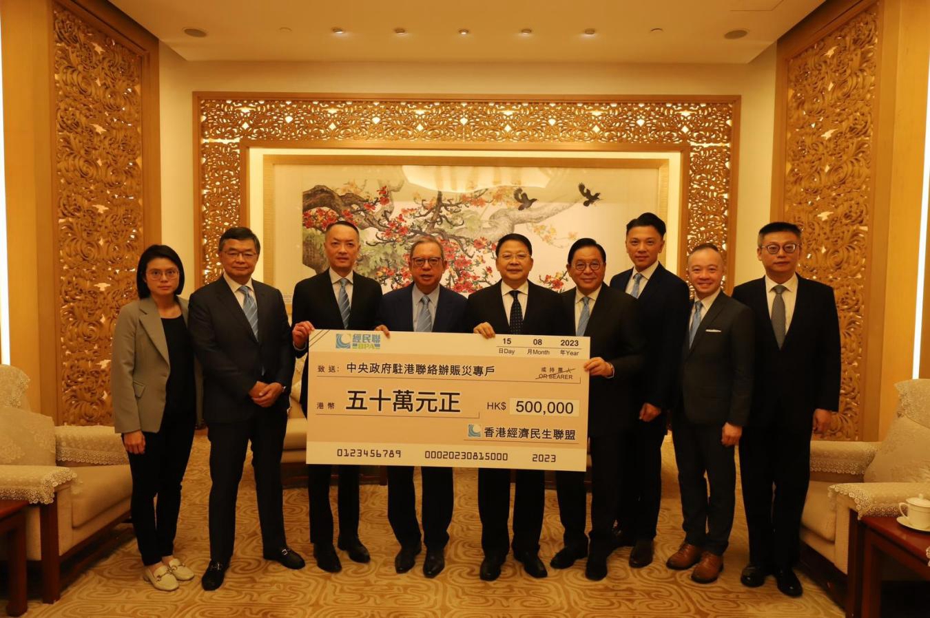 经民联捐款50万港元。(图片来源:中央政府驻港联络办)