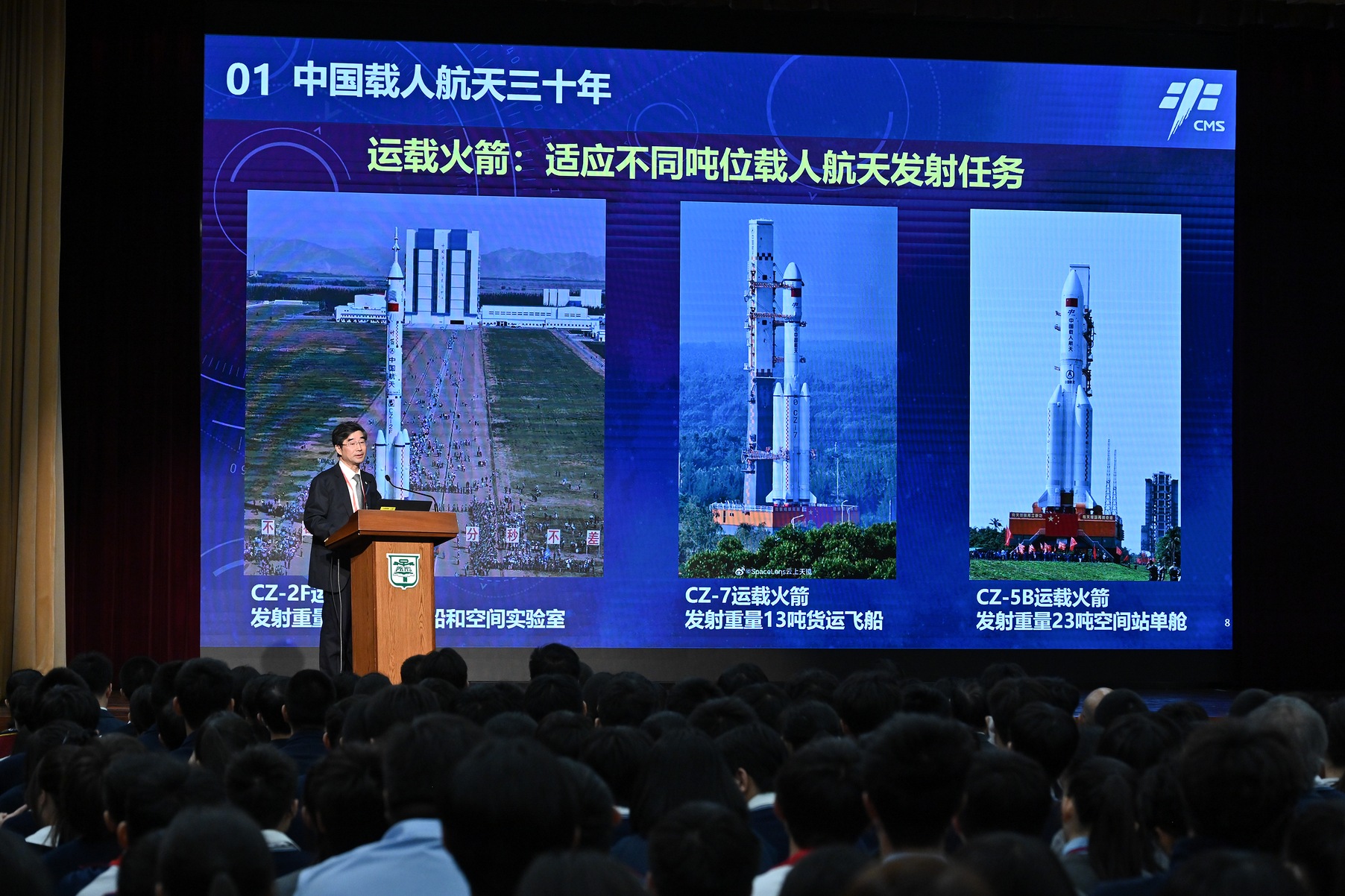 中国载人航天工程代表团11月29日继续在港访问,图示代表团成员甘克力出席在培侨中学举行的“中国载人航天工程代表团与中、小学生真情对话”活动。
