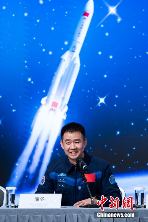 11月28日,抵达香港访问的载人航天工程代表团在香港会展中心举行媒体见面会。图为中国航天员科研训练中心航天员大队大队长、神舟十四号乘组指令长陈冬回答记者提问。中新社记者 侯宇 摄