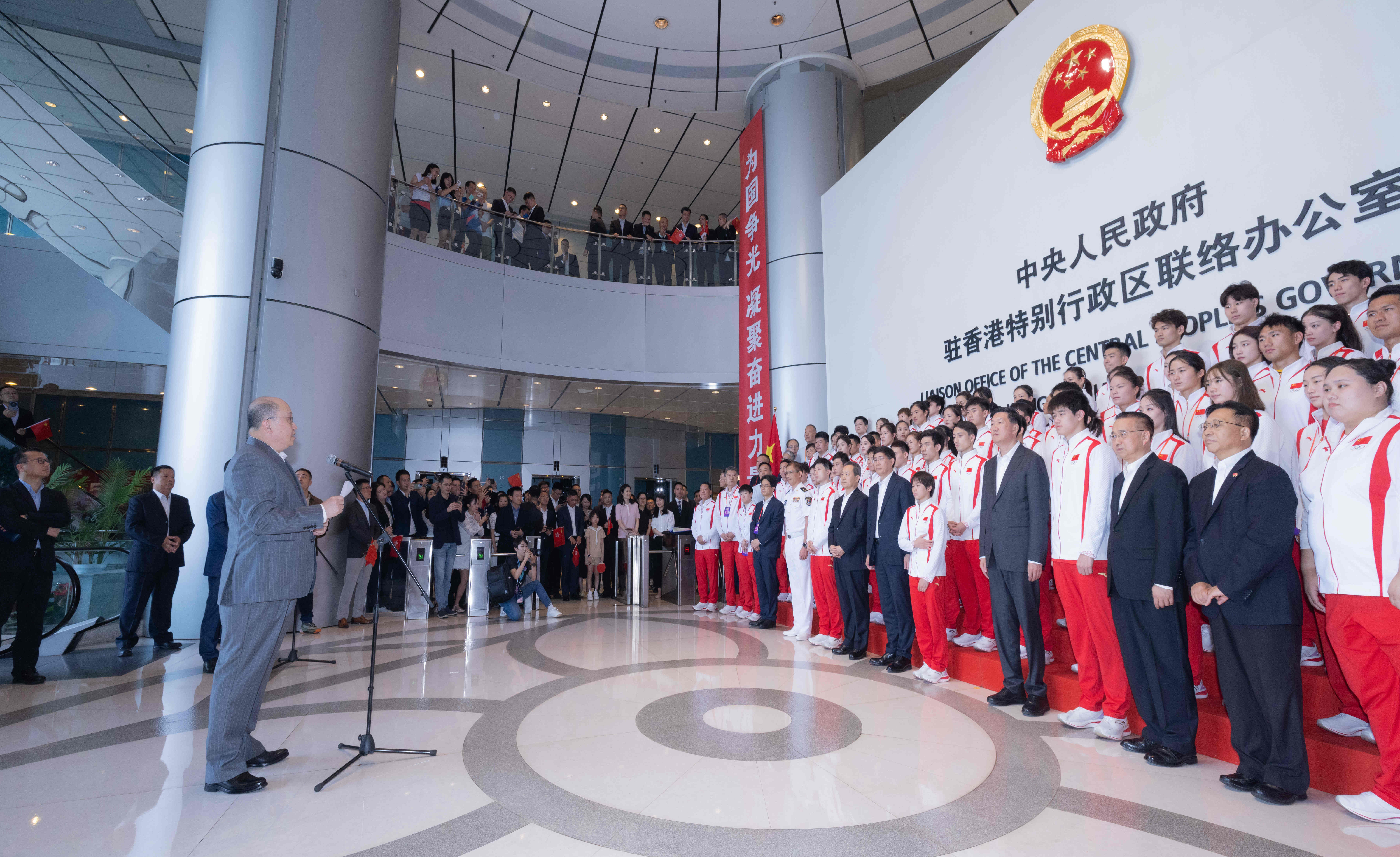 中央政府驻港联络办欢迎内地奥运健儿代表团到访。(图片来源:中央政府驻港联络办)