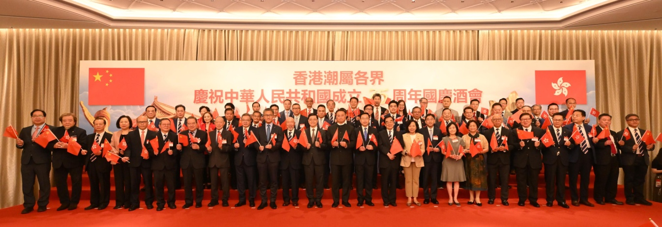 本网讯 9月23日,香港潮属各界庆祝中华人民共和国成立75周年国庆酒会举行。香港特区行政长官李家超出席并致辞,中央政府驻港联络办副主任何靖应邀出席。特区政府主要官员、社会各界嘉宾以及香港潮属各界代表等近500人参加庆祝活动。