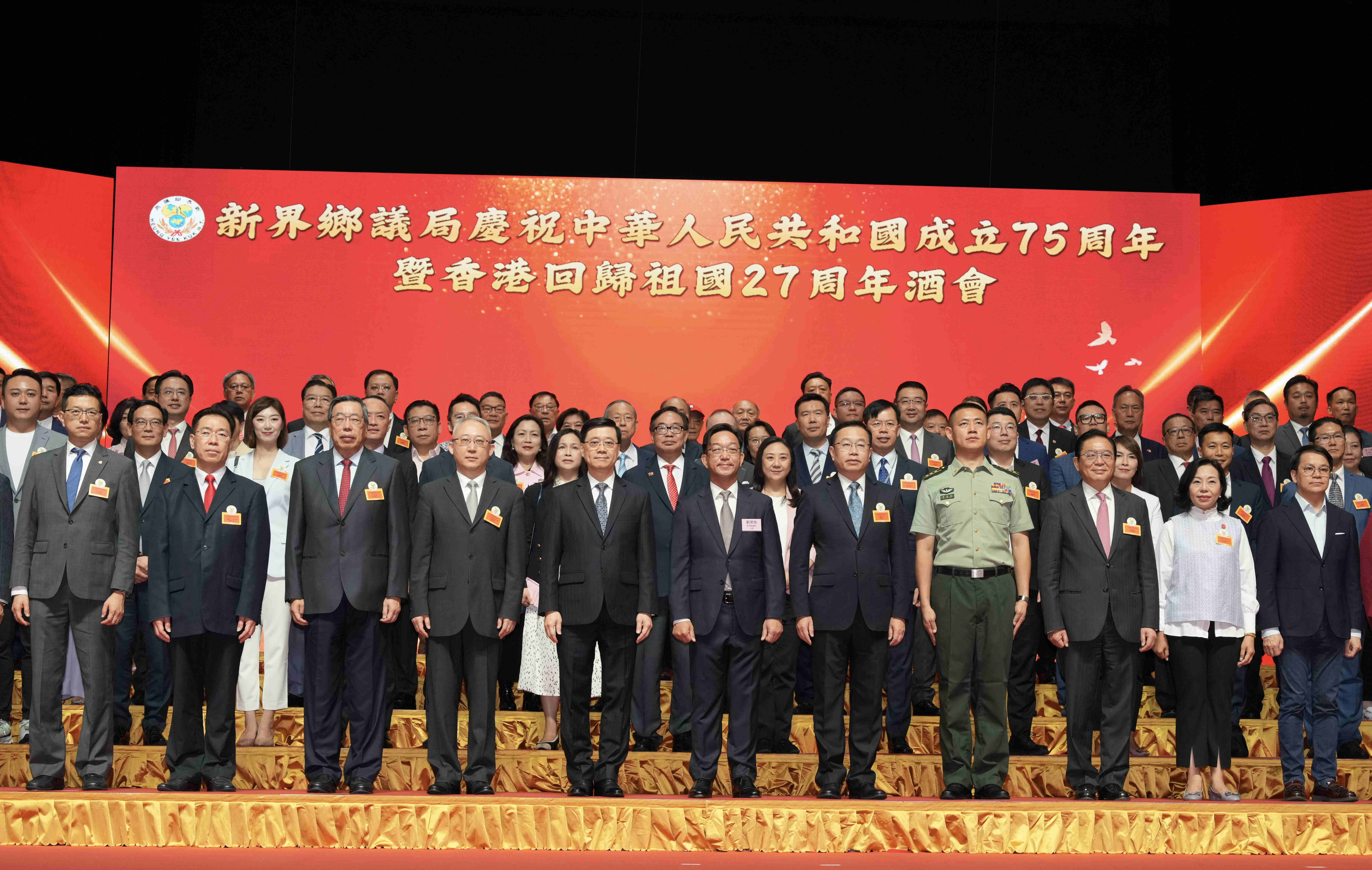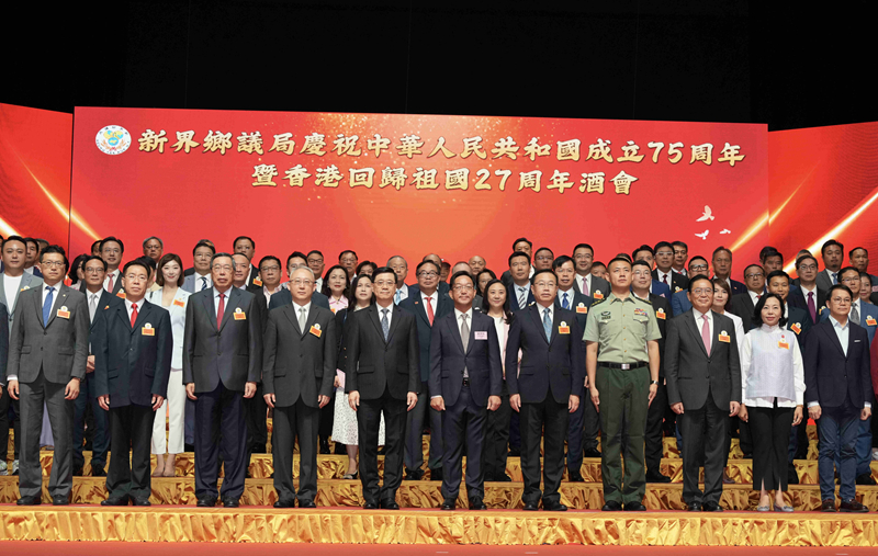 本网讯 9月27日,新界乡议局举办庆祝中华人民共和国成立75周年暨香港回归祖国27周年酒会,香港特区行政长官李家超出席并致辞,中央政府驻港联络办副主任何靖担任主礼嘉宾。特区政府民政及青年事务局局长麦美娟颁发第一届“好村长嘉许计划”证书。外交部驻港公署、解放军驻港部队有关负责人应邀出席。特区政府有关部门负责人、立法会议员及乡议局议员约700人参加。