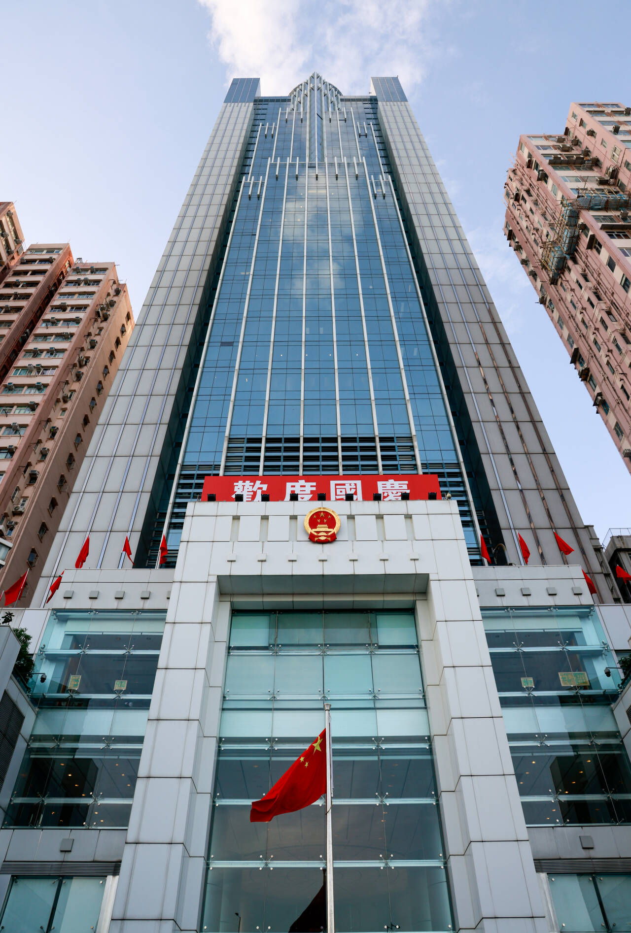 图片五星红旗迎风招展。(图片来源:中央政府驻港联络办)