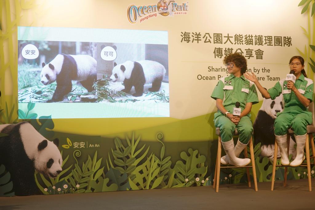 第三对中央赠港大熊猫“安安”和“可可”到港安家一周,目前的进食量、排便量、休息时间等均接近在四川基地时的状态。香港海洋公园10月3日下午举行简报会,由大熊猫护理团队分享照顾点滴。