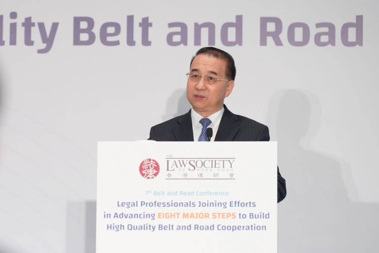 刘光源表示,“一带一路”走的是携手并进的阳光大道、开放合作的希望之道、文明互鉴的人间正道。党的二十届三中全会擘画了以进一步全面深化改革开辟中国式现代化的宏伟蓝图,展示了进一步扩大高水平对外开放,为世界发展提供新机遇的坚定决心。香港作为共建“一带一路”重要功能平台和节点,始终站在中国对外开放的最前沿。刘光源分享了三个观点。一是筑牢国家安全底线,夯实贡献“一带一路”的法治根基。《维护国家安全条例》的制定实施,标志着香港进一步夯实法治根基,香港营商环境更安全、更自由、更开放、更可预期。事实证明,香港只有“安下来”“稳下来”,由治及兴才有保障,助力共建“一带一路”才有底气。二是发挥普通法独特优势,展现助力“一带一路”的香港所长。?香港高度对接国际经贸通行规则,可以助力“一带一路”加速“法联通”;争议解决体系完备,可以打造“一带一路”纠纷化解的“优选地”;“全球百大律所”半数以上在香港设有办事处,可以成为“一带一路”法律服务的“人才库”。三是提供优质法治公共产品,扩大“一带一路”“朋友圈”。近年来,国家出台多项重要发展战略,支持香港建设亚太区国际法律及解决争议服务中心,对外扩大法治合作、推广法律服务。驻港联络办将一如既往,全力支持香港法律界参与共建“一带一路”,融入国家发展大局,用自身所长贡献国家所需。?