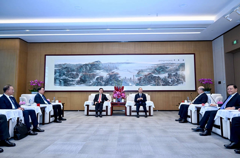 11月25日,黄坤明、王伟中与李家超、郑雁雄率领的香港工商界代表团举行工作会见。(图片来源:南方+)