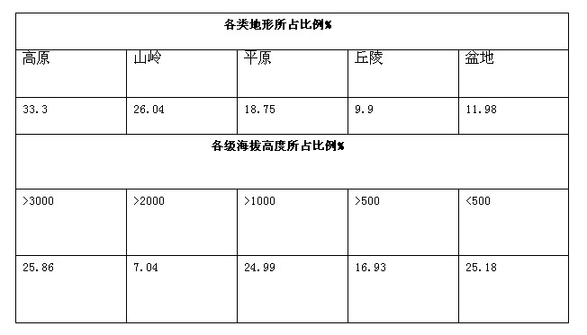 ??? 在中国辽阔的大地上,有雄伟的高原、起伏的山岭、广阔的平原、低缓的丘陵,还有四周群山环抱、中间低平的大小盆地。陆地上的5种基本地形类型,中国均有分布,这为中国工农业的发展提供了多种多样的条件。